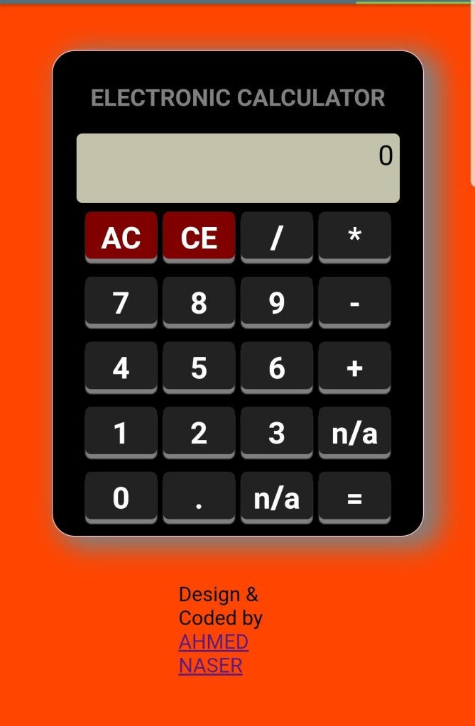 ADVANCE CALCULATOR USING JAVASCRIPT https://code.sololearn.com/W3OqfJwcnaTT/?ref=app https://code.sololearn.com/W7uU2ukKyAM1/?ref=app Made by Ahmed naser Share it. Print (Opens in new window) Print Share on LinkedIn (Opens in new window) LinkedIn Like Loading... Related Leave a comment Cancel reply