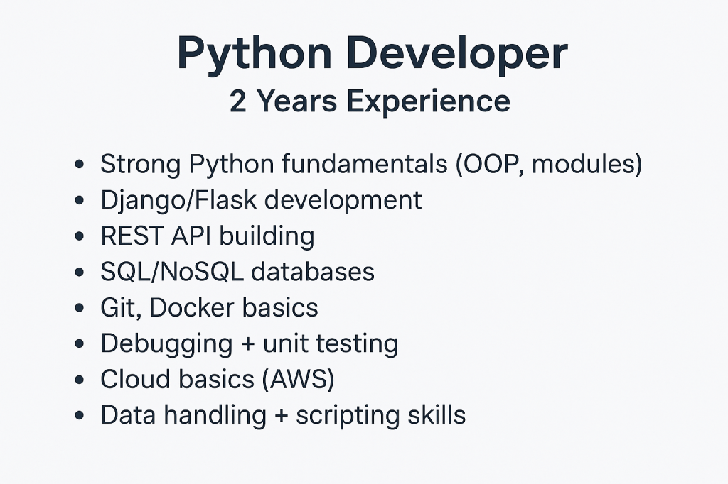 Step 1: Master Core Python – data types, OOP, exceptions, file handling, modules, and Python 3 features.