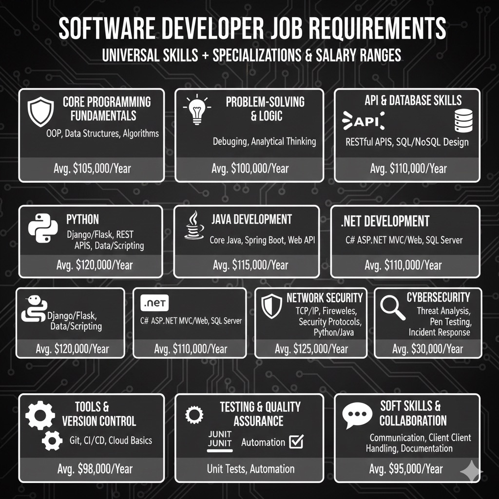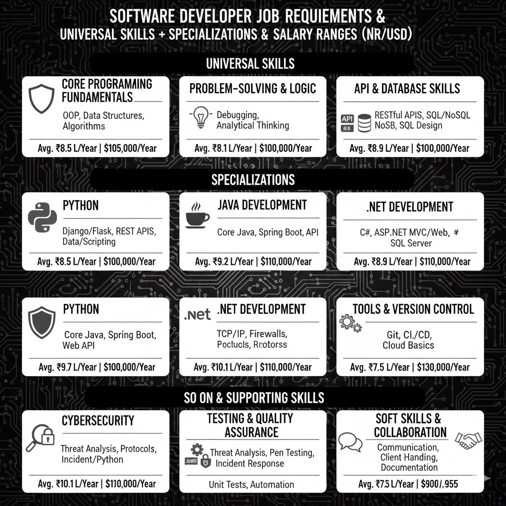 Salary: India ₹6–12 LPA; USA $85K–$110K/year depending on skills and location.